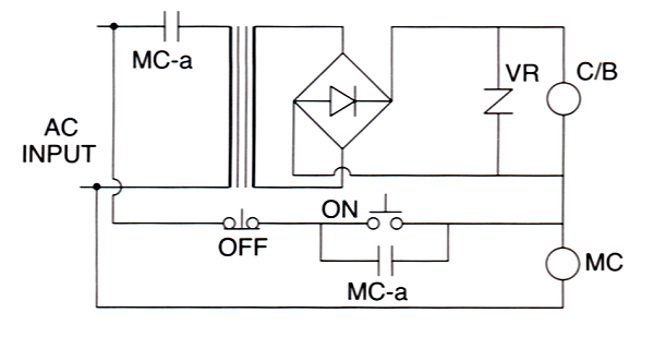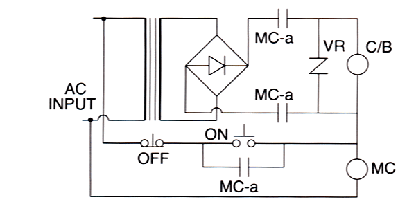 The basic control circuit for clutch and brake consists of a transformer, rectifier, surge protector and switch. The circuit in figure 18 is widely used in clutch designs. Magnetic relays a and b are for switches. To ensure that the clutch and driver remain off it will be necessary to add another control switch.